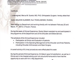 В 2013 г. прошёл месячную стажировку в клинике SanMichaelг. Тулон, Франция.